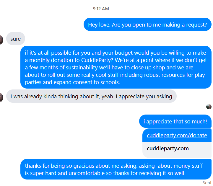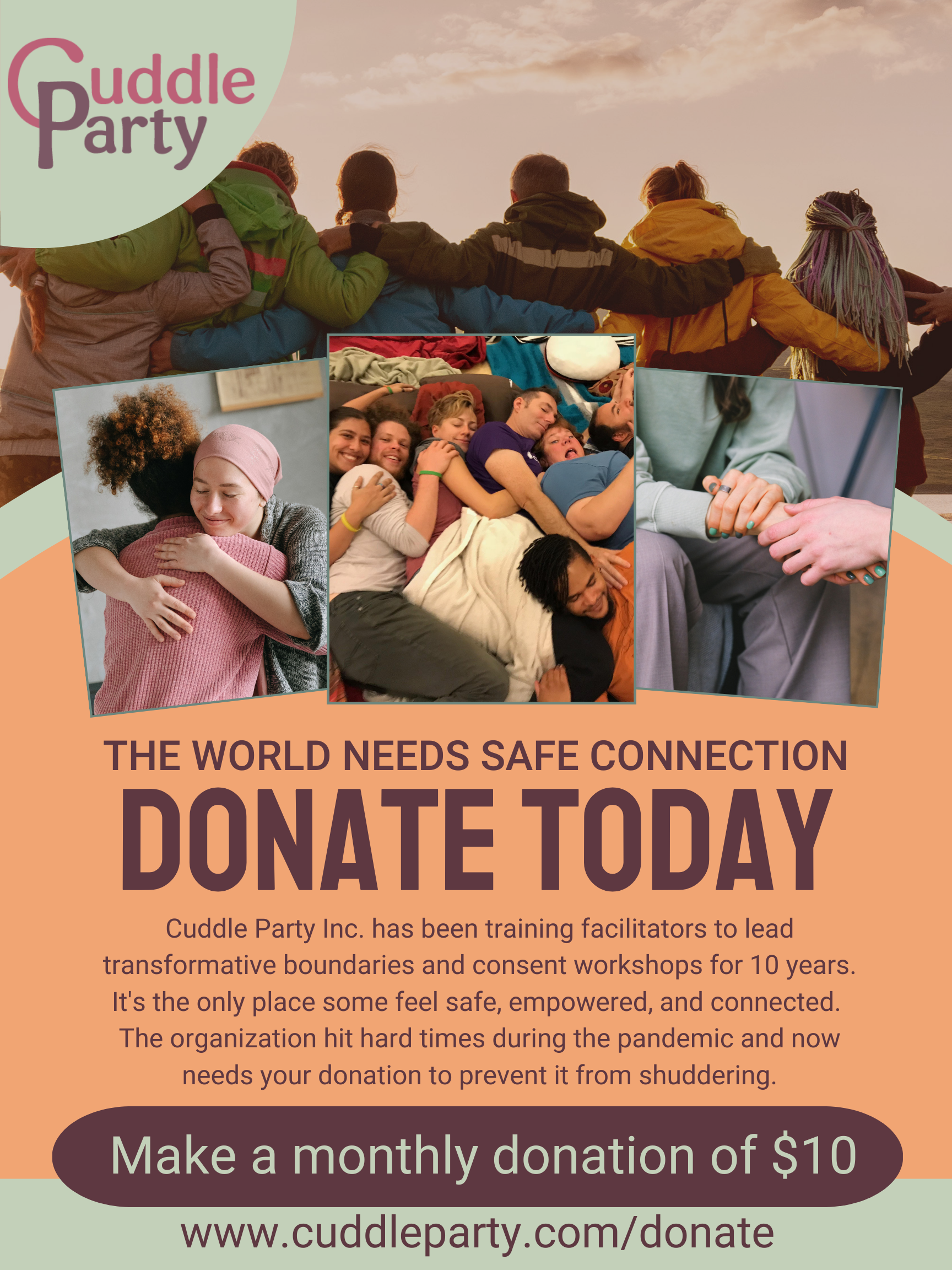 Cuddle Party INC. relies on donations to carry out its mission and purpose.
